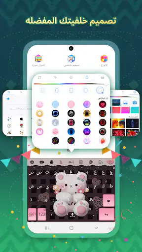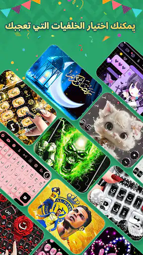 كما يضم التطبيق مئات الخلفيات والثيمات المتنوعة مثل المناظر الطبيعية، الأنمي، الرومانسية، المناسبات، والمشاهير، مع إمكانية تخصيص شكل الأزرار واختيار صورة من معرض الهاتف كخلفية للوحة المفاتيح.