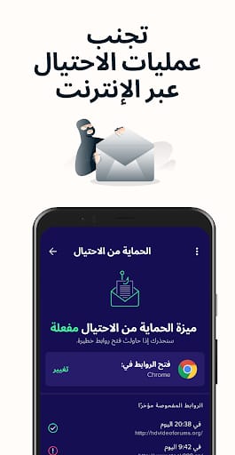 يحميك من المواقع المصابة بالفيروسات والروابط الاحتيالية التي قد تسرق بياناتك أثناء التصفح.
