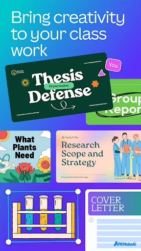 - تطبيق شامل: محرر صور، فيديو، شعارات، CV، بوسترات وعروض تقديمية.