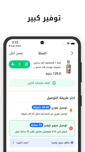 - قد تختلف مدة التوصيل السريع في بعض المناطق النائية أو خلال ساعات الذروة.