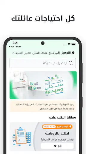 - افتح التطبيق، حدد موقعك، وابدأ في طلب أدويتك واحتياجاتك الصحية بكل سهولة.