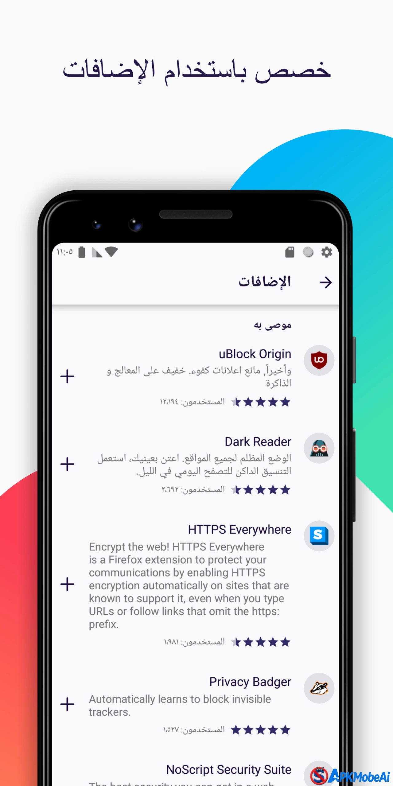 يدعم المتصفح مجموعة كبيرة من الإضافات التي تتيح لك تخصيص تجربة التصفح وتعزيز الخصوصية والأداء.