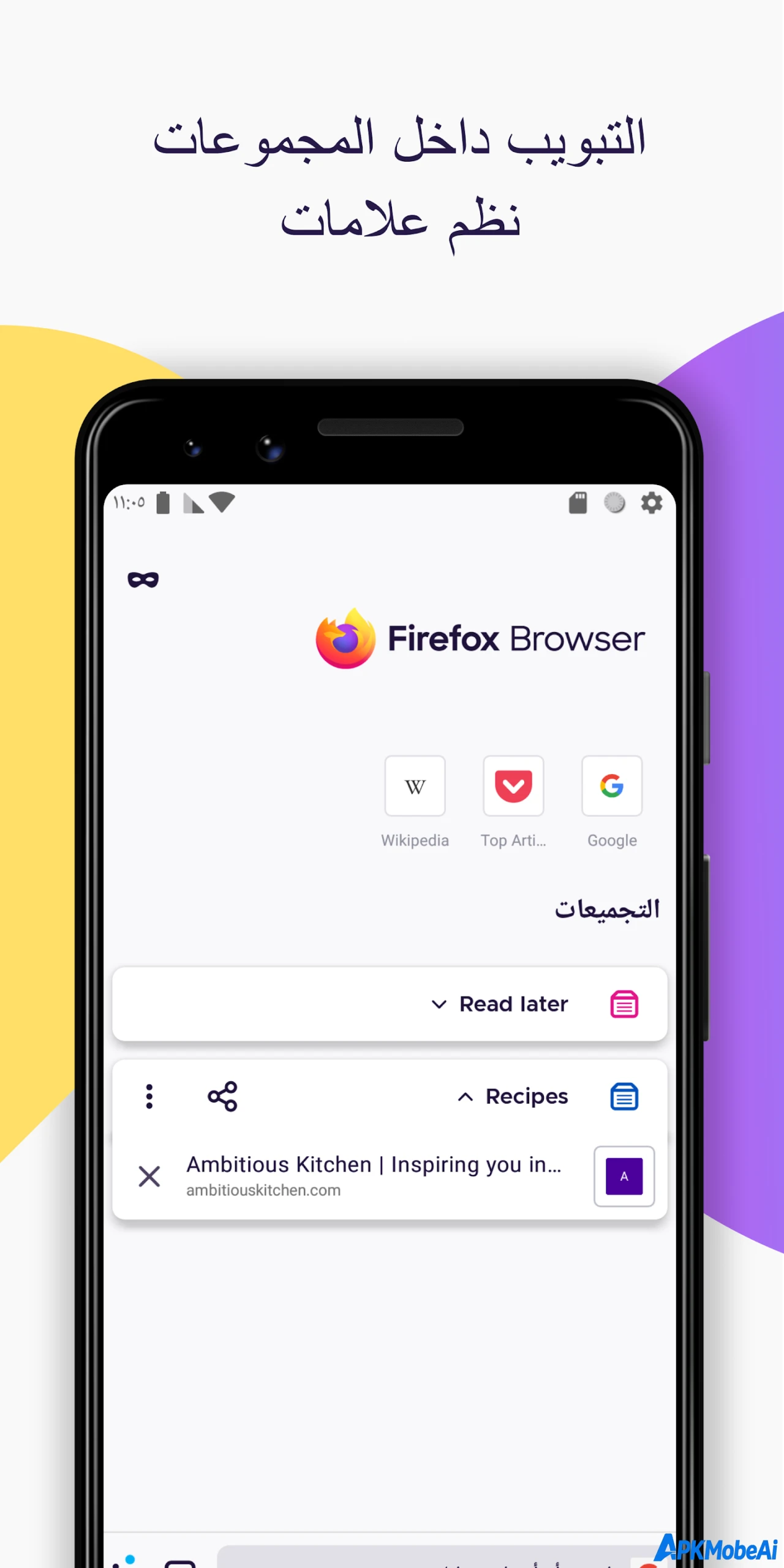 شريط البحث يقدم اقتراحات فورية، مع وصول سريع إلى محركات البحث المفضلة والمواقع التي تزورها باستمرار.
