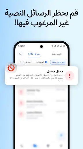 لا يقتصر عمل Getcontact على المكالمات فقط، بل يقوم بفلترة الرسائل النصية العشوائية (Junk SMS) ووضعها في مجلد منفصل. هذا يضمن بقاء صندوق الوارد الرئيسي مخصصاً للمحادثات المهمة، مع إمكانية استعادة أي رسالة تم حظرها بالخطأ في أي وقت.