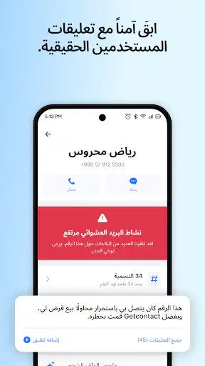 - قاعدة بيانات عالمية: يعتمد على ملايين المستخدمين لتحديث بيانات المتصلين والسبام لحظياً.