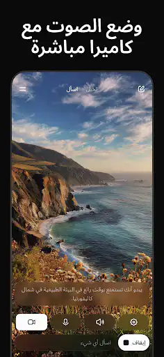- استخدم أيقونة الكاميرا لرفع الصور وطلب تحليلها، أو أيقونة الميكروفون لبدء محادثة صوتية طبيعية تماماً.