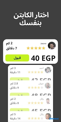 - عرض سعر كل سائق.