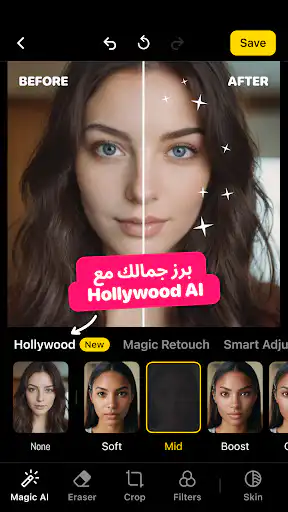 - تحسين البشرة وإزالة العيوب تلقائيًا.