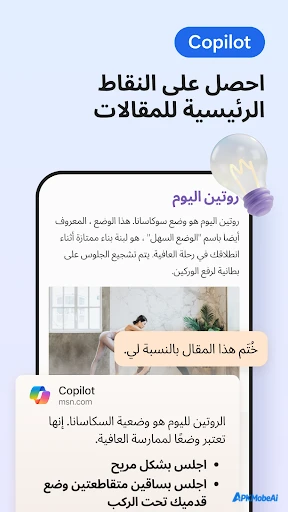 - متصفح ذكي مدمج مع Copilot للبحث والكتابة والتلخيص.