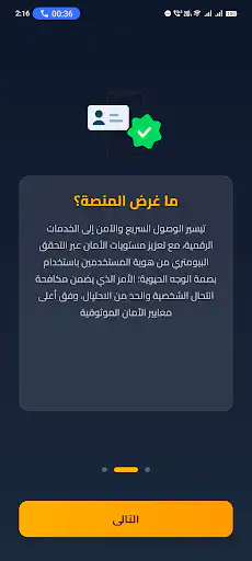 - قم بإتمام عملية توثيق الهوية الرقمية من خلال اتباع التعليمات الظاهرة على الشاشة وإرسال المستندات المطلوبة.