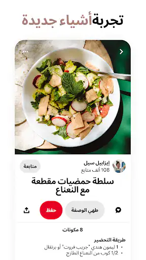 يعرض لك Pinterest موجزًا رئيسيًا (Home Feed) مصممًا خصيصًا بناءً على عمليات البحث والتفاعل والمواضيع التي تتابعها. كلما استخدمت التطبيق أكثر، أصبح أكثر ذكاءً في عرض أفكار تناسب ذوقك.