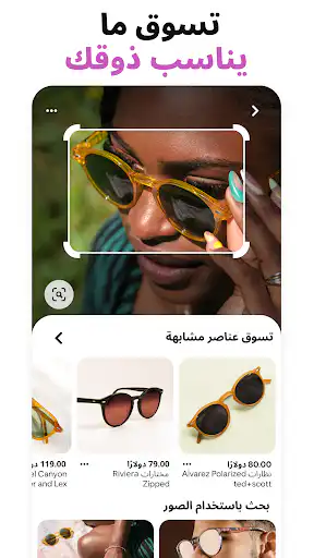 يدعم التطبيق البحث بالكلمات المفتاحية وأيضًا البحث بالكاميرا.