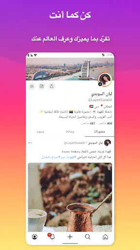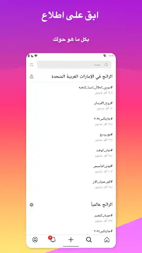 ج: نعم، يدعم التطبيق واجهة اللغة العربية بالكامل، كما تظهر المنشورات والتريندات المحلية المتوافقة مع منطقتك العربية بوضوح.