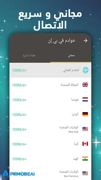 يُقدم خدمة آمنة وسريعة مع عدد ضخم من الخوادم العالمية، ويسمح لك بالوصول إلى المواقع والتطبيقات المحجوبة،