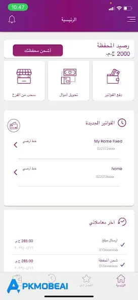 نعم، التطبيق يدعم دفع كل الفواتير المنزلية وإعادة شحن بطاقات الكهرباء عبر NFC.