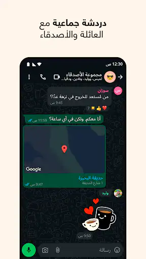 يوفر التطبيق حرية كبيرة في مشاركة الصور والفيديوهات والمستندات بأحجام كبيرة وبجودة أصلية. كما تتيح ميزة “الموقع المباشر” (Live Location) لأصدقائك تتبع مسارك للوصول إليك بسهولة، مع إمكانية تحديد المدة الزمنية للمشاركة لضمان خصوصيتك. ولإضافة لمسة من المرح، يمكنك استخدام الملصقات (Stickers) والصور المتحركة (GIFs) لجعل المحادثات أكثر حيوية.