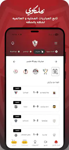 - يمكنك الآن تصفح أقسام الأخبار، المباريات، والفيديوهات والاستمتاع بكل ما يخص نادي الزمالك.