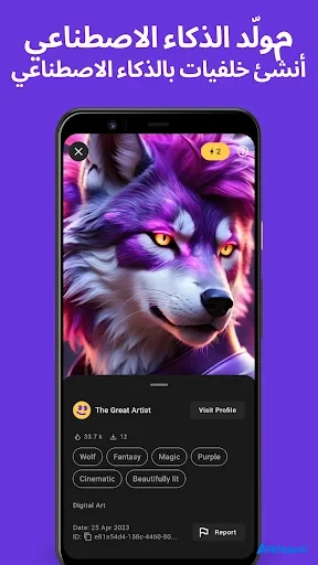 إذا كنت من محبي الإبداع، يتيح لك Zedge™ AI تحويل أفكارك وكلماتك إلى خلفيات شاشة مميزة باستخدام الذكاء الاصطناعي.